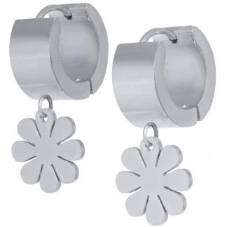 STAINLESS STEEL HUGGIE EARRING WITH FLOWER SHAPE ALL IN S/S COLOR