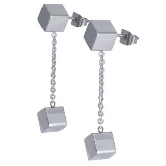 STAINLESS STEEL EARRING WITH TWO PCS OF CUBE SHAPE ALL IN S/S COLOR