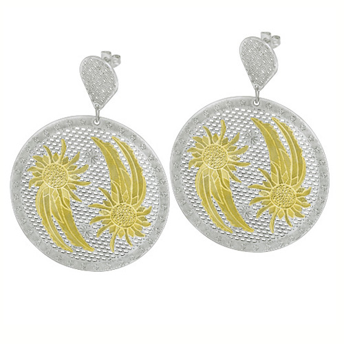 STAINLESS STEEL EARRING IN CIRCLE SHAPE WITH SUNFLOWER IN IPG TWO TONES