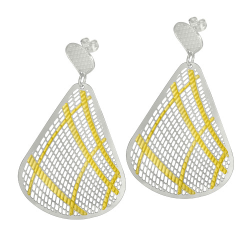 STAINLESS STEEL EARRINGIN DROP SHAPE WITH CUTOUT IN IPG TWO TONE