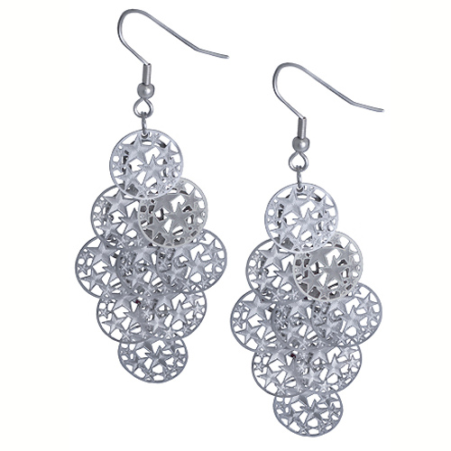 STAINLESS STEEL EARRING WITH 9PCS CIRCLE DROPS ALL IN S/S COLOR