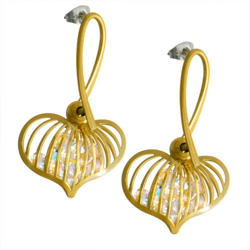STAINLESS STEEL EARRING IN HEART SHAPE WITH CUTOUT WITH CZ INSIDE ALL IN IPG COLOR