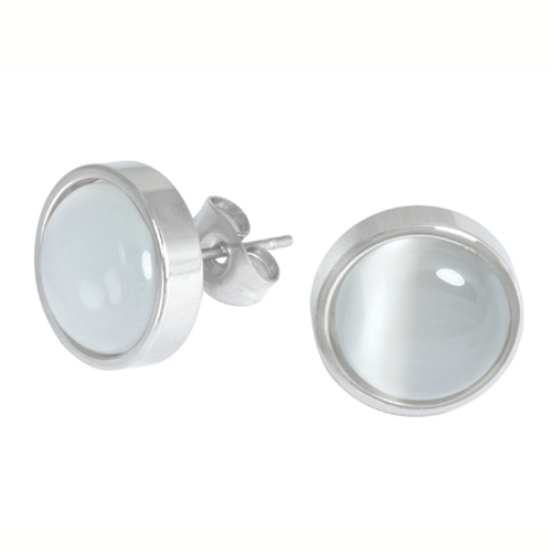 STAINLESS STEEL EARRING IN ROUND SHAPE WITH WHITE STONE IN S/S COLOR