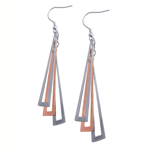 STAINLESS STEEL EARRING IN 3PCS TRIANGLE IN IP ROSE 2 TONE