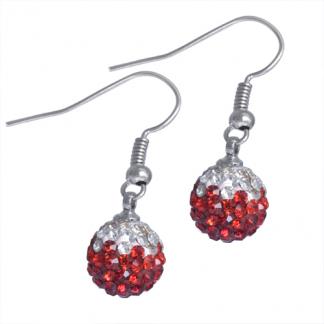 STAINLESS STEEL EARRING WITH RED & WHITE CZ BALL WITH FISH HOOK