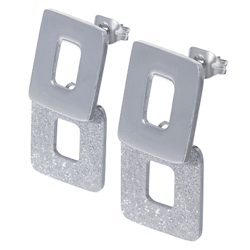 STAINLESS STEEL EARRINGIN RECTANGLE SHAPE(2 RECTANGLE)WITH SANDBLAST ALL IN S/S COLOR