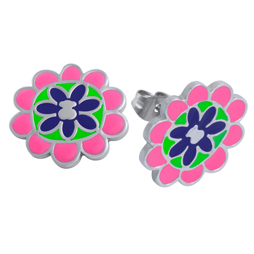 STAINLESS STEEL EARRING IN COLORFUL FLOWER SHAPE