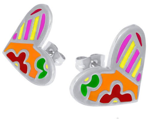 STAINESS STEEL EARRING IN COLORFUL HEART SHAPE