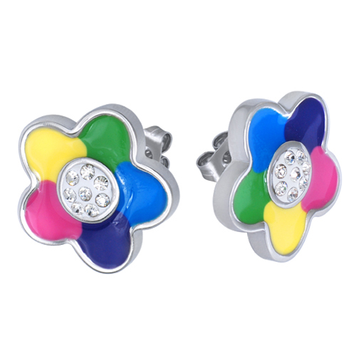 STAINLESS STEEL EARRINGIN COLOR FLOWER SHAPE WITH CZ