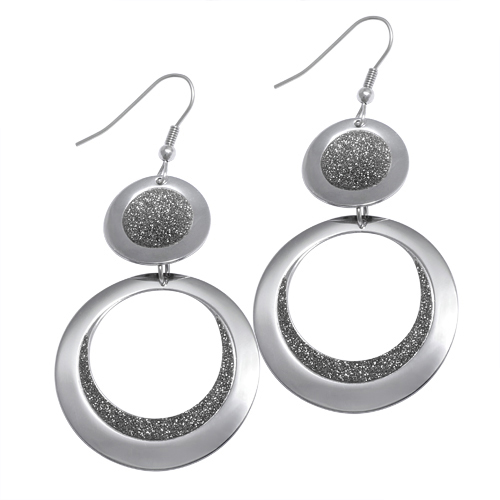 STAINLESS STEEL DANGLE EARRINGIN 2 CIRCLE IN BROWN / BLACK / GOLD COLOR) WITH SAND BLASTED PAPER