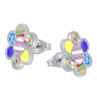 STAINLESS STEEL PIERCED EARRING IN FLOWER SHAPE