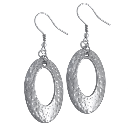 STAINLESS STEEL DANGLE EARRING IN OVAL SHAPE IN S/S COLOR