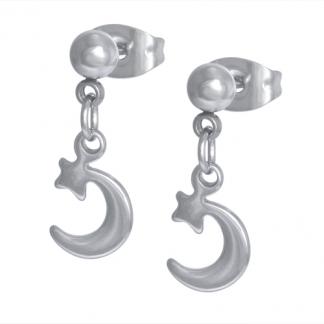 STAINLESS STEEL DROP EARRINGIN MOON SHAPE IN S/S COLOR