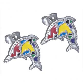 STAINLESS STEEL STUD EARRING WITH DOLPHIN