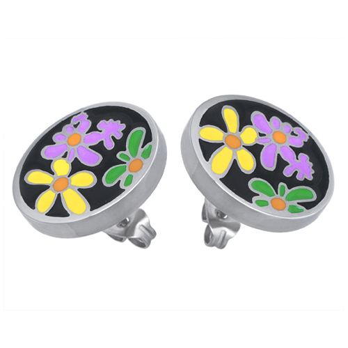 STAINLESS STEEL CIRCLE EARRING (PURPLE AND YELLOW)