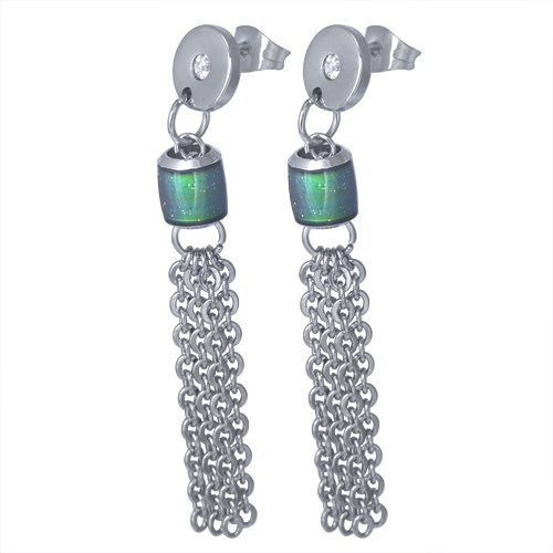 STAINLESS STEEL DROP EARRING WITH MOOD STONE WITH CZ ALL IN S/S COLOR