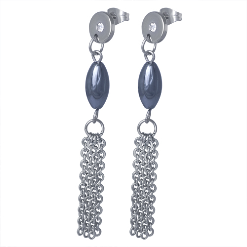 STAINLESS STEEL DROP EARRING WITH HEMETAIT OVAL WITH CZALL IN S/S COLOR