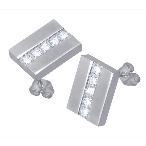 STAINLESS STEEL EARRING IN RESTANGULAR SHAPE IN ALL S/S COLOR WITH 5 CZ (CNC SETTING) (LIKE SE793)