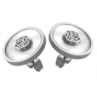 STAINLESS STEEL EARRING IN CIRCLE SHAPE WITH ROSE & SHELL ALL IN S/S COLOR (LIKE SE825)
