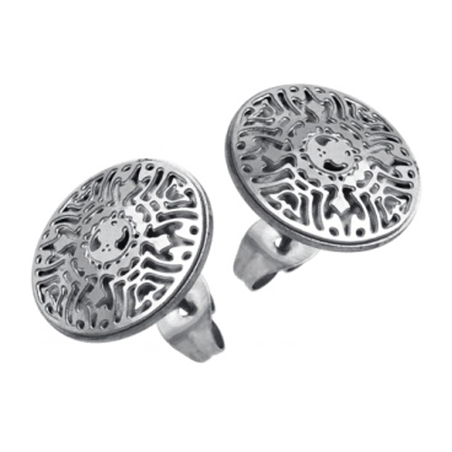 STAINLESS STEEL STUD EARRING IN CIRCLE SHAPE WITH CUT OUT ALL IN S/S COLOR (LIKE SE727)