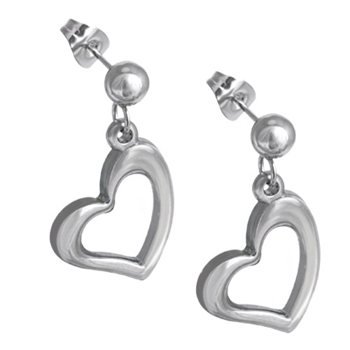 STAINLESS STEEL DROP EARRING IN HEART SHAPE ALL IN STEEL COLOR