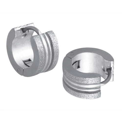 STAINLESS STEEL HUGGIE EARRING ALL IN S/S COLOR WITH SANDBLAST