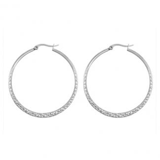 STAINLESS STEEL HOOP EARRING ALL IN S/S COLOR(BOTTOM FLAT PART HAMMERED)