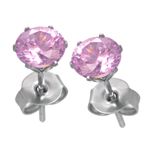 STAINLESS STEEL STUD EARRING WITH PINK CZ