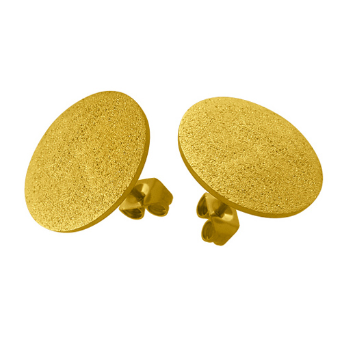 STAINLESS STEEL ROUND STUD EARRING WITH SANDBLAST ALL IN IPG COLOR