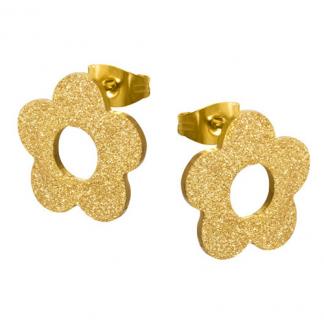 STAINLESS STEEL STUD EARRING IN FLOWER SHAPE WITH SANDBLAST ALL IN IPG COLOR