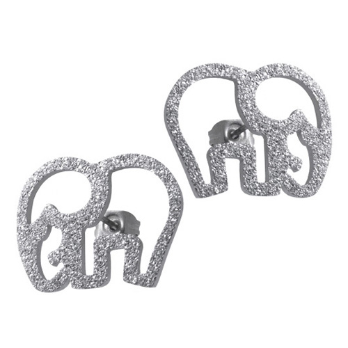 STAINLESS STEEL STUD EARRING IN ELEPHANT SHAPE WITH SANDBLAST ALL IN STEEL COLOR