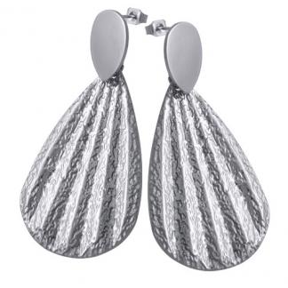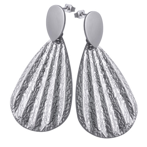 STAINLESS STEEL DROP EARRING WITH PATTERN (HAMMERED) ALL IN STEEL COLOR