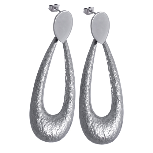 STAINLESS STEEL DROP EARRING WITH PATTERN (HAMMERED) ALL IN STEEL COLOR
