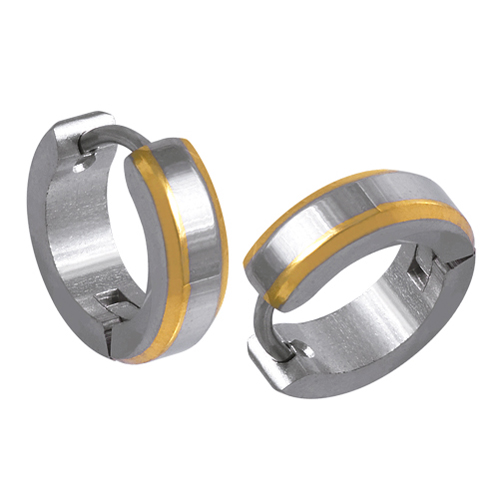 STAINLESS STEEL HUGGIE EARRING IN IPG TWO TONE
