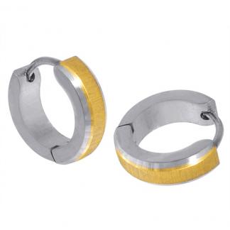STAINLESS STEEL HUGGIE EARRINGPOLISH & SATININ IPG TWO TONE