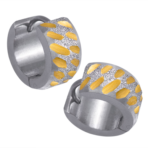 STAINLESS STEEL HUGGIE EARRING IN IPG TWO TONE WITH SANDBLAST