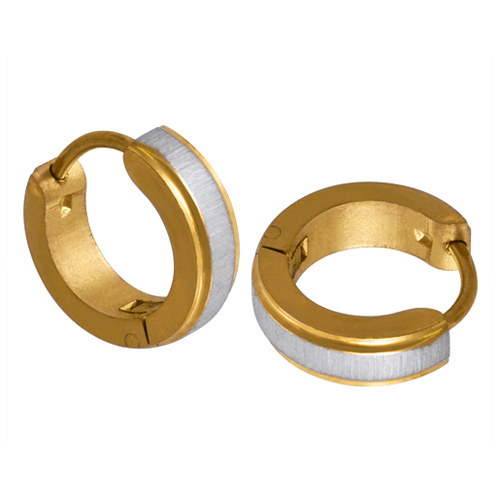 STAINLESS STEEL HUGGIE EARRING POLISH & SATIN IN IPG TWO TONE