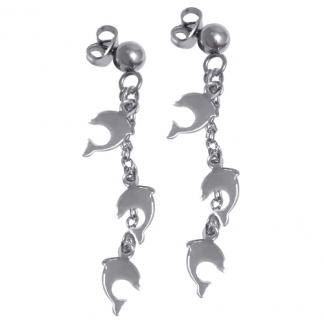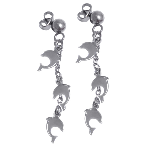 STAINLESS STEEL DROP EARRING WITH 3 DOLPHIN ALL IN STEEL COLOR