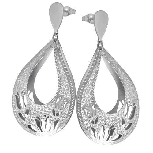 STAINLESS STEEL 3D EARRING IN DROP SHAPEWITH FLOWER PATTERN WITH CUT OUTALL IN STEEL COLOR