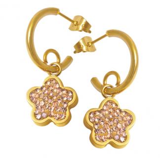 STAINLESS STEEL EARRING WITH FLOWER SHAPE DROP WITH ROSE COLOR CZ ALL IN IPG COLOR