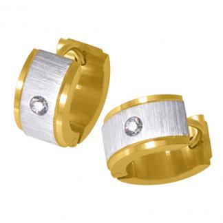 STAINLESS STEEL HUGGIE EARRING (POLISH & SATIN) IN IPG TWO TONE WITH 1 CZ