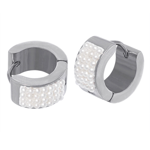 STAINLESS STEEL HUGGIE EARRING IN STEEL COLOR WITH SYNTHETIC PEARL