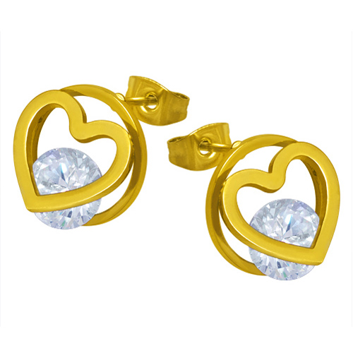STAINLESS STEEL ROUND EARRING WITH HEART SHAPE WITH BIG CZ ALL IN IPG COLOR