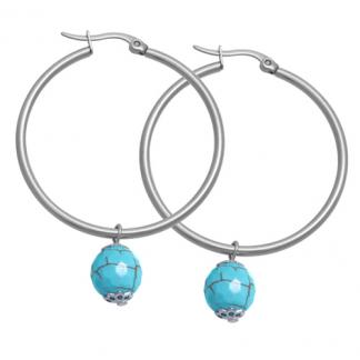 STAINLESS STEEL HOOP EARRING IN CIRCLE SHAPE ALL IN STEEL COLOR WITH 1 TURQUOISE STONE
