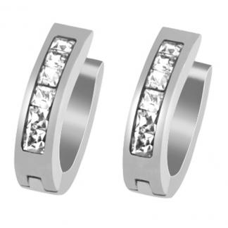 STAINLESS STEEL HUGGIE EARRING WITH 6 CZ ALL IN STEEL COLOR