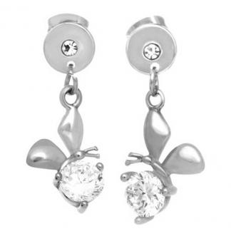 STAINLESS STEEL EARRINGS CIRCLE WITH 1 CZ WITH BUTTERFLY CHARM WITH CZ (Set with SP1081)