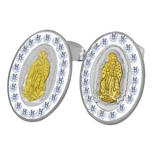 STAINLESS STEEL EARRING IN OVAL SHAPE WITH GUADALUPE WITH CZ IN IPG TWO TONES