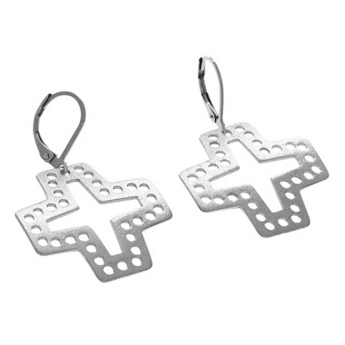 STAINLESS STEEL EARRINGS IN CROSS SHAPE WITH CUTTING HOLES ALL IN S/S COLOR (set with SP1564)