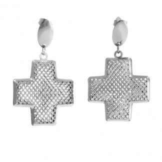 STAINLESS STEEL EARRINGS IN CROSS SHAPE WITH MESH ALL IN S/S COLOR (Set with SP1573)