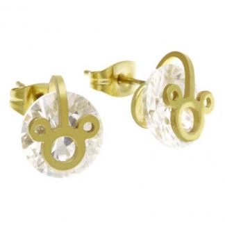 STAINLESS STEEL EARRINGS CZ IN CIRCLE SHAPE WITH MICKEY ALL IN IPG COLOR